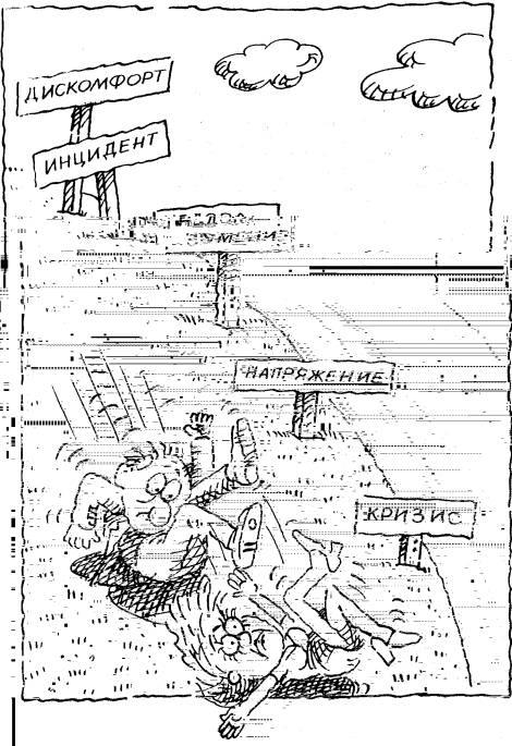 Конфликт может быть позитивным или негативным, конструктивным или деструктивным, в зависимости от того, как мы его разрешим. Он редко бывает застойным — перемены возможны в любое время. Иногда мы можем изменить его курс просто взглянув на него по-другому. Даже ссора может стать источником развлечения! Однако подобное преобразование конфликта есть своего рода искусство, которое требует особых навыков. Мы должны уяснить себе прежде всего, что наши ссоры и разногласия суть часть жизни и что ошибочно пытаться избежать их. Наша жизнь может стать менее тягостной, если мы научимся предвосхищать возможный конфликт и подходить конструктивно к его разрешению. Разрешение конфликта зависит во многом от уровня нашей бдительности, ибо он предваряется более или менее очевидными сигналами. Назовем их «сигналами конфликта». Кризис как сигнал достаточно очевиден. Когда человек рвет свою связь с партнером по работе или по любви, ясно, что, судя по всему, мы имеем дело с неразрешенным конфликтом. |
